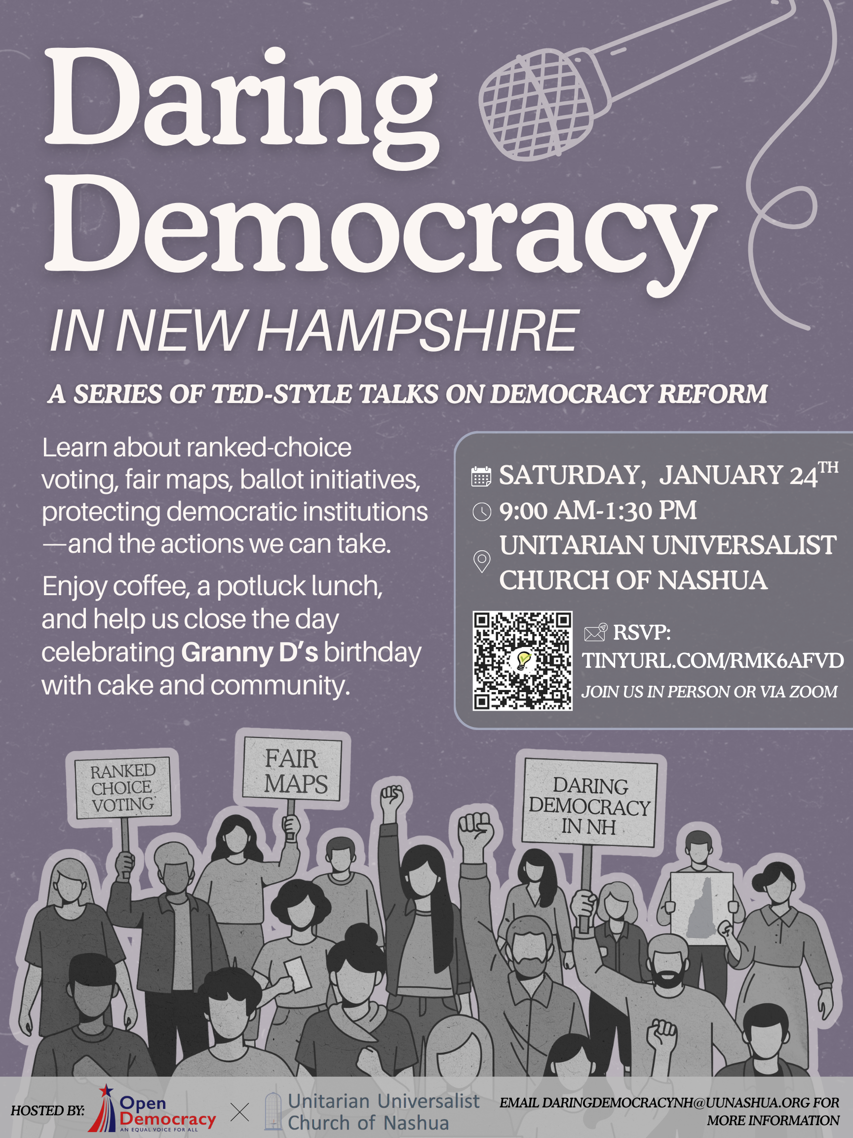Democracy Reform, co-hosted by Open Democracy and the Unitarian Universalist Church of Nashua