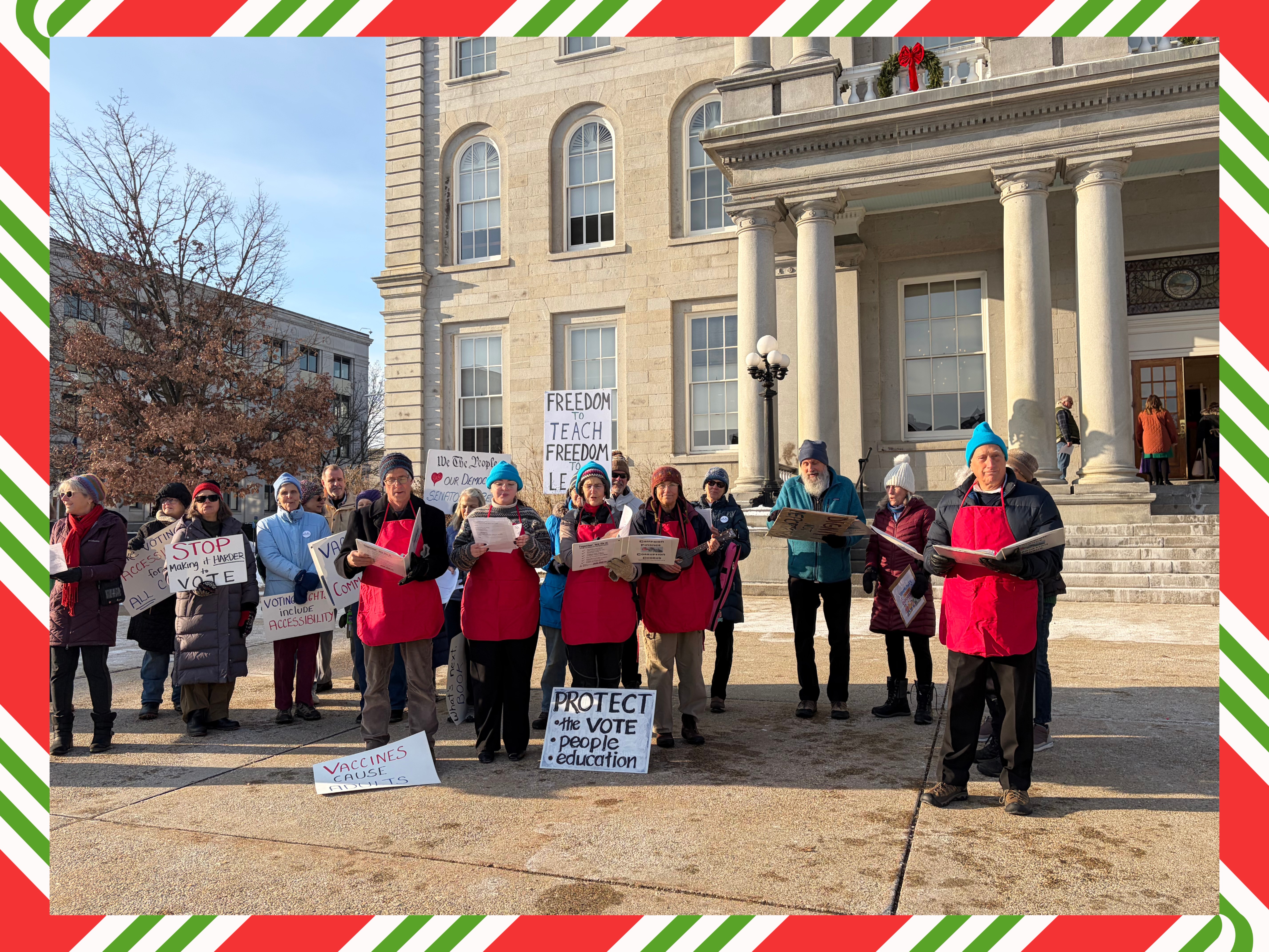 Corruption Chorus to the State House on Veto Day, raising our voices alongside friends from Kent Street Coalition to remind lawmakers that democracy should work for everyone.