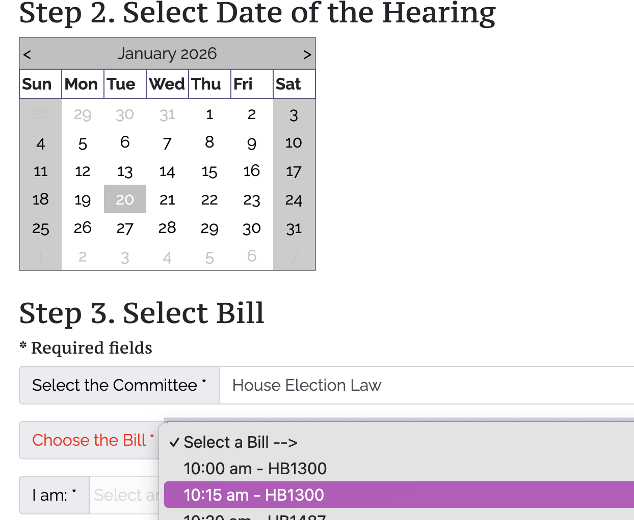 Public Hearing: 1/20/26 at 10:00 a.m. Link to Sign in on House Bills ⚠️ Be sure to sign in on the FIRST HB 1300 on the dropdown⚠️ |